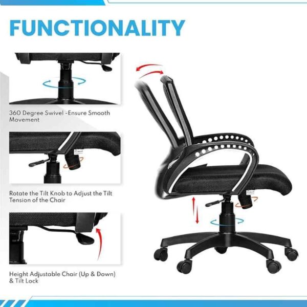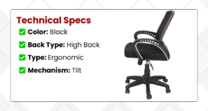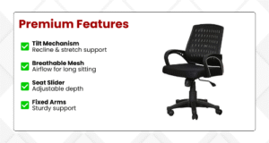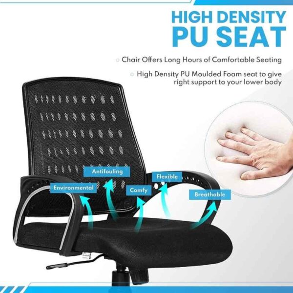 The Mesh Office High Back Chair with seat slider and fixed arms is the new option for the manager or CEO. The mesh chair comes with a Tilt Mechanism which allows you to lean back into the chair and also help with stretching while sitting for long periods of time. You can adjust the recline of this office chair to your desired angle.